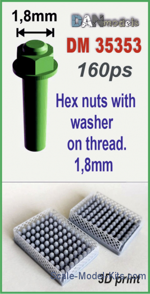 Accessories for dioramas. Hex nuts with washeron thread 1.8mm, 160 pcs in scale 1/35 (DAN Models No.35353)
