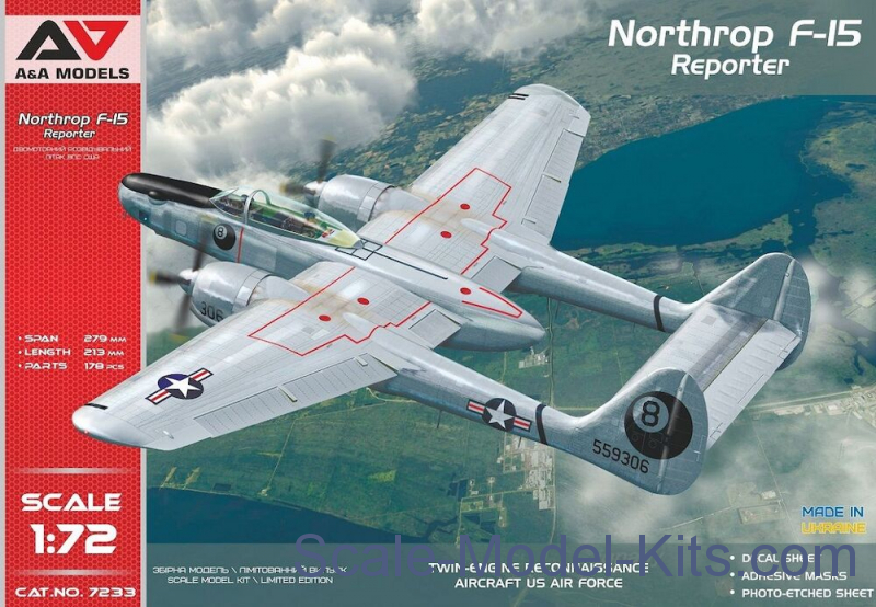 Northrop F-15 Reporter Reconnaissance AircraftSKU: AAM7233Manufacturer: A & A Models Scale: 1:72 Price: $49.50 Plastic model in 1/72 scale Northrop F-15 Reporter Reconnaissance Aircraft (A&A Models No.7233) This set includes:
