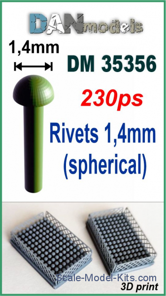 Accessories for dioramas. Rivets 1.4mm (spherical), 230 pcs in scale 1/35 (DAN Models No.35356)