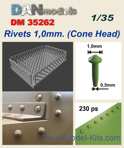 Accessories for dioramas. Rivets 1mm (cone head) in scale 1/35 (DAN Models No.35262)