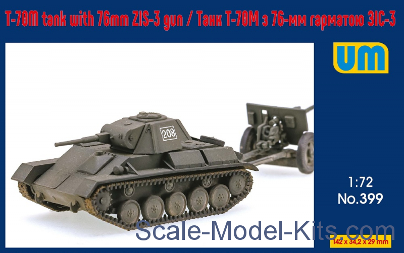 Plastic model 1/72 T-70M tank with 76mm ZIS-3 gun (Unimodel No.399)
