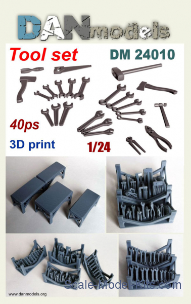 Accessories for dioramas. Tool Set, 40pcs in scale 1/24 (DAN Models No.24010)